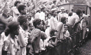 Comme tout bon citoyen de notre époque j’ai été appelé sous les drapeaux et a vécu les affres du service légal sous le contingent des « Indigènes » en mai 1955. Avec des concitoyens comme mon copain de caserne Ratefiarison, j’ai été transbahuté d’un camp militaire à un autre (Betongolo, Fiadanana, Antsirabe, Ambatolampy, Ambositra et Diego-Suarez) avant de participer, après une traversée de 3 mois sur le pont du navire Ferdinand de Lesseps, au maintien de la paix sur le canal de Suez en 1956. Libéré du service militaire en juin 1957, j’au tout de suite intégré la vie professionnelle civile à Antsirabe au sein du studio Photo Select appartenant à Paul Rakotozafy. C’est à partir de cette ville que le 18 mars 1959, je fus appelé par mon frère Jean, employé à l’Express Photo d’Antananarivo pour couvrir les grandes crues dues à la rupture de la digue de l’Ikopa ayant mis la capitale sous les eaux. A bord d’un canot de l’Armée française, avec entre autres, le Président Philibert Tsiranana, Dr Philémon Rajaonarivelo, le ministre Eugène Lechat et Bao Andriamanjato et en compagnie des Scouts, on a traversé la capitale depuis Antanimena (à hauteur du restaurant-Bar Maïtena) jusqu’à Fenoarivo. De là, affrétant un taxi au prix de 25F (de l’époque) les pellicules sont illico presto envoyé vers Paris pour l’agence Gamma/Upi via l’aéroport d’Arivonimamo.