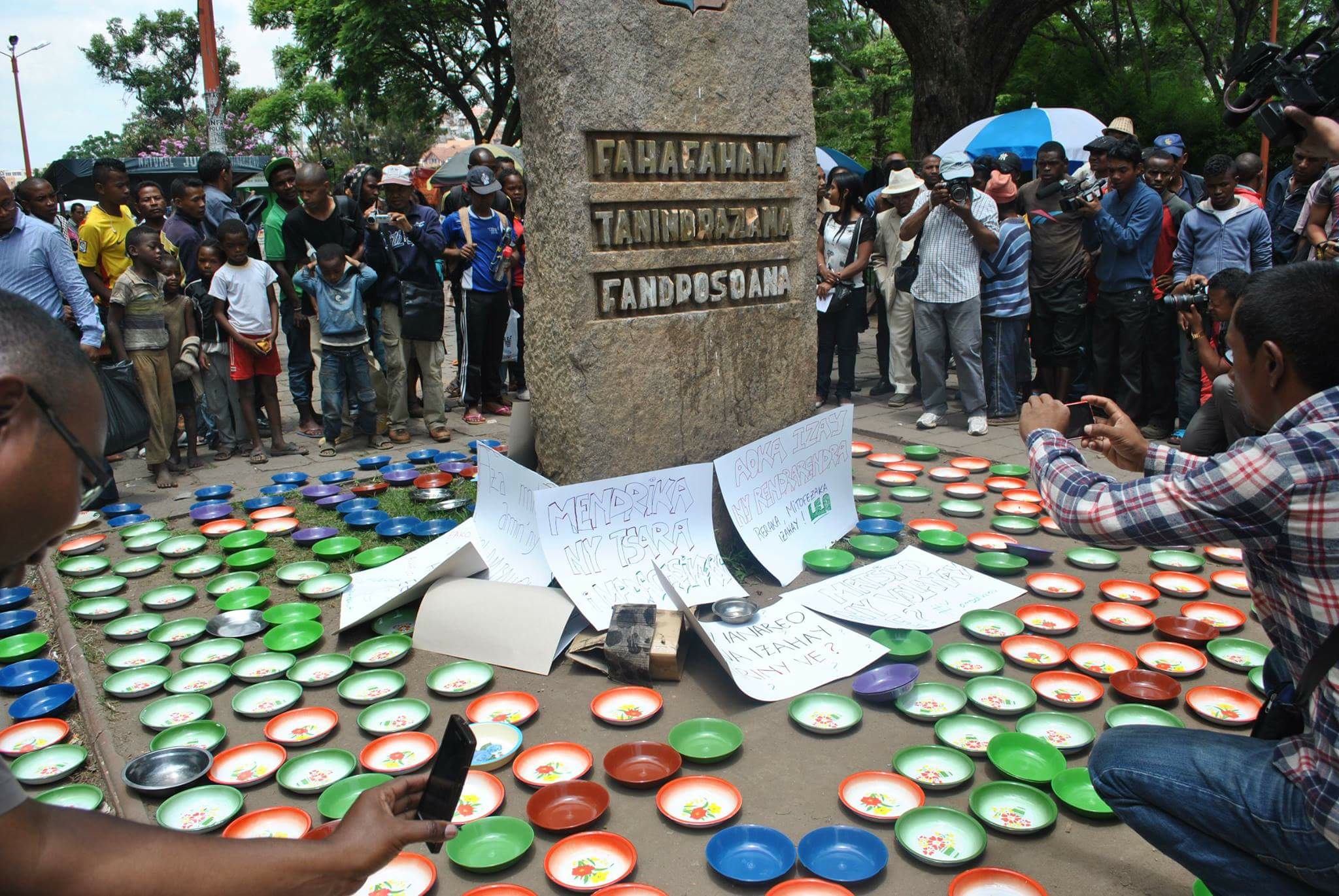 Le festin au Palais d’Etat d’Iavoloha s’est bel et bien tenu hier malgré la sollicitation de la population en générale pour son annulation. Parallèlement à l’évènement et les 1 700 invités du Président de la République, l’association « Wake up Madagascar » a tenu une manifestation silencieuse au jardin d’Antaninarenina, et ce, dans le but de tirer la sonnette d’alarme sur la malnutrition et la famine qui frappent les 92% des malgaches actuellement. Les membres de cette association ont exposé des assiettes vides afin de montrer leur désapprobation concernant le banquet organisé à Iavoloha à l’occasion de la cérémonie de présentation de vœux. A la fin de la manifestation, les organisateurs ont enregistré environ 350 assiettes. Le silence a été observé par tout le monde, comprenant les passants et les participants ont pu exprimer leurs frustrations en utilisant des jeux de mots : « Tratry ny taona, lovia moana = lovia noana », « aoka izay ny rendrarendra », « ianareo voky, izahay noana », pouvait-on lire sur les pancartes.
