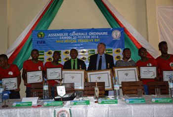 L’équipe nationale malgache de Beach soccer, championne d’Afrique 2015 ainsi que le staff technique étaient décorés par le ministre de la Télécommunication, de la Poste et de la Nouvelle Technologie, Neypatreiky Rakotomamonjy, représentant du président de la République hier lors de l’Assemblée générale ordinaire de la Fédération malgache de football (Fmf) ce samedi.