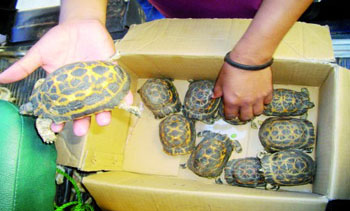 Près de 146 tortues sont saisis par les agents de la douane de Chatrapati Shivaji International Airport, dimanche dernier. Un agent de sécurité a remarqué des images suspectes dans un des bagages des passagers. Il a interpellé l’intelligence Unit Air (Aiu) des douanes. Le sac appartenait à un passager de transit pour Katmandou. Ce passager, un certain Lal Bahadur, vient de Madagascar et a « oublié » son sac. Les agents de la douane indienne ont examiné le bagage et ont repéré 146 tortues dont 139 tortues radiées (Astrochelys radiata) et 7 Angonoka tortue (Astrochelys yniphora). Rappelons que les deux espèces sont en danger critique d’extinction. « Deux tortues radiées ont été retrouvés mortes avec des coquilles cassées dues au stress du voyage. Toutes ces tortues sont rares et nous faisons de notre mieux pour les sauver », annonce Rajiv Ranjan,