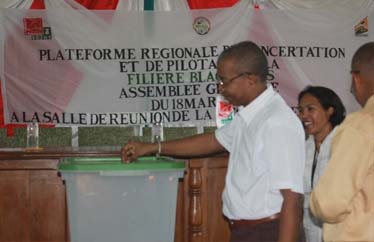 Et ipso facto s’est déroulée au bureau du Bloc administratif d’Ampisikina, dès le 18 mars dernier, l’élection des membres du comité exécutif de la plateforme Lojy dans la Région Boeny. Une mise en place qui s’est déroulée en présence des 70 opérateurs de la filière. Fut élu ainsi président, Ratsirahonana Tanjakiniaina Ditra, collecteur de produits locaux issu de la commune d’Ambato-Boeny. Avec l’Assemblée générale et le comité technique, ledit comité constitue la plateforme de la filière avec comme objectif commun la préservation des intérêts communs des opérateurs.