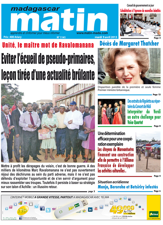 La Une du 09 avril 2013