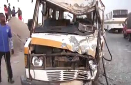 Tôt dans la matinée du vendredi 29 avril 2016, un taxi-be venant d’Ambohitrimanjaka roulait à vive allure et heurta de plein fouet un autre taxi-be de Mahitsy sur la route Digue. Selon les témoins, les deux voitures roulaient à une vitesse au-dessus de la normale. L’une des deux tentait de dépasser l’autre qui ne lui a pas laissé le passage, cause de l’accident. La collision a été fatale. Vu la violence du choc, le sprinter s’est renversé du bas côté de la route, avec la partie arrière du véhicule totalement détruite. L’autre véhicule, quant à lui, s’est transformé en un tas de ferraille inextricable. Il y a huit morts à déplorer jusqu’ici. La vue des corps gisant sur le bord de la route horrifiait les passants. Les autres passagers ne s’en sont pas sortis totalement indemnes car la plupart ont été grièvement blessés, et d’autres sont dans un état grave. C’est presque un miracle qu’il n’y ait eu pas plus de morts à déplorer, vu l’ampleur des dégâts que le carambolage a provoqué.