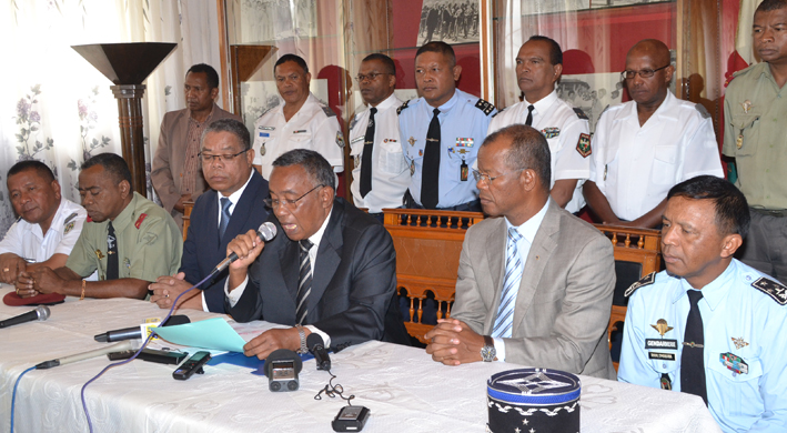 Les 6 responsables des forces de l’ordre, à savoir le général de division Richard Ravalomanana, commandant de la Gendarmerie nationale ; le contrôleur général de police Désiré Rakotondratsima, directeur général de la Police nationale ; le général de division André Ndriarijaona, chef de l’Etat-major général de l’Armée ; le général de division Randrianazary, secrétaire d’Etat chargé de la Gendarmerie nationale ; le contrôleur général de Police Arsène Rakotondrazaka, ministre de la Sécurité intérieure et le général de corps d’armée Lucien Rakotoarimasy, ministre des Forces armées, ont convoqué les journalistes, hier au siège du ministère des Forces armées à Ampahibe pour communiquer leur engagement dans la procédure des élections. Effectivement, ils ont signé un accord concernant leur totale neutralité envers les politiciens et les prétendants à la course à la magistrature suprême.