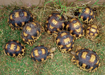 Trois espèces de tortues dans l’étape d’extinction à l’état sauvage — la Ploughshare Tortoise, rayonnée Tortoise et Burmese tortue étoilée ont trouvé un centre au zoo de Singapour dans le Tortoise Shell-ter. L’angonoka, une espèce particulièrement rare de tortue terrestre, convoitée par les collectionneurs du monde entier se trouve dans le centre. Madagascar ne compte plus que moins de 170 individus de cette espèce. Sans mesure de sauvegarde, l’extinction de cette espèce est à craindre dans les prochaines années à venir. L’angonoka est la cible du braconnage et du commerce illicite des animaux domestiques. Certaines des tortues qui se trouvent dans le Shell-ter ont été confisquées par les autorités de propriétaires de ces animaux ou des animaux saisis lors de leur expédition en passant par Singapour. D’autres ont été données auprès des propriétaires qui ont réalisé qu’ils ne devraient pas les avoir.