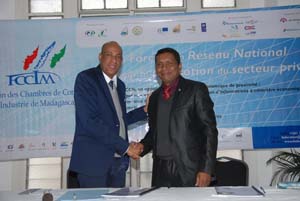 La passation de service entre le Président entrant de la fédération de la chambre de commerce et de l’industrie de Madagascar, Andrianomenjanahary Brice et le Président sortant, Chabani Nourdine a eu lieu hier à la chambre de commerce et de l’industrie de Madagascar. « Nous avons fait tant d’efforts afin que la fédération de la chambre de commerce et de l’industrie de Madagascar trouve sa place actuellement. Mon souhait est que ces efforts continueront », a déclaré le Président sortant. « Je suis toujours à vos côtés et j’apporterai mon appui aux chambres de commerce et à la fédération », rajoute-t-il. « Les choses ne sont pas toujours faciles, mais il ne faut jamais baisser les bras. Quand nous arrivions à la tête de la fédération, nous avons commencé avec un état plutôt négatif. J’ai investi personnellement pour le développement de la fédération. J’ai sorti de l’argent de ma poche à plusieurs fois. Ce sont des investissements nécessaires pour faire démarrer et puis ensuite mettre la fédération à la place qu’elle occupe actuellement », dixit Chabani Nourdine. Actuellement, Madagascar est vice-président des chambres consulaires africaines et francophones ou Cpccaf et assure la présidence de la zone Afrique de l’Est et de l’océan Indien. « Ce poste appartient à Madagascar, donc le Président entrant assurera aussi ces fonctions », explique le Président sortant. « Avec ces titres, la Grande île ainsi que les entreprises malgaches sont mises en avant », rajoute Chabani Nourdine. « J’ai demandé au Ministre du commerce de faire un cotutelle pour les chambres de commerces et de l’industrie », conclut le ministre de l’industrie. Le nouveau Président a promis de continuer les efforts entrepris par son prédécesseur.