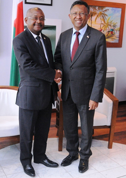 En visite officielle à Madagascar à l’occasion de la réunion sur un projet concernant « le Développement du Genre », en collaboration avec le ministère de la population, de la protection sociale et de la promotion de la femme (Mppspf), Hamada Mardi Boléro, nouveau secrétaire général de la commission de l’océan Indien (Coi), a été reçu par le chef de l’Etat à Iavoloha. Les discussions se sont focalisées sur la « continuité des projets de la Coi, entre autres, la sécurité alimentaire, la coopération régionale avec tous les pays ». Ils ont également abordé les questions relatives à la stabilité de la région.