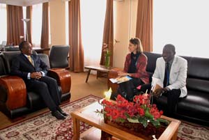 Le ministre auprès de la présidence chargé de l’Agriculture et de l’élevage, Rivo Rakotovao, a reçu le jeudi 18 août 2016 la visite de l’Ambassadeur du Japon, Ogasawara Ichiro et de la Représentante de l’Unicef à Madagascar, Mme Elke Wisch. Par ailleurs, Madagascar sera cité comme exemple à travers PAPRIZ qui est un projet financé par le Gouvernement japonais ayant connu des résultats probants. C’est ce qu’a annoncé l’Ambassadeur du Japon lors de sa rencontre avec M. Rivo Rakotovao. Cette visite avait aussi pour but de reconfirmer la participation de Madagascar à la sixième édition de la Conférence Internationale de Tokyo sur le développement en Afrique (TICAD 6) qui se déroulera à Nairobi Kenya les 27 et 28 août prochains. De plus, cette réunion est une occasion pour consolider le développement de l’Afrique dont l’un des problèmes majeurs est la sécurité alimentaire. Mais également afin de discuter des perspectives et des projets d’avenir notamment la vulgarisation et le développement des techniques PAPRIZ à l’échelle nationale et du projet de réhabilitation du PC 23 Alaotra.
