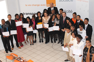 30 étudiants issus des 27ème et 28ème promotions d’Orange School ont reçu leurs certificats de fin de formation à Ankorondrano le 27 août 2016 des mains du Directeur général d’Orange Madagascar, Benja Arson, et du Directeur des ressources humaines, Zo Andriatsilavo.