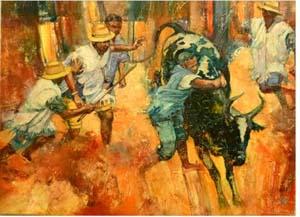 Préférant particulièrement le grand format pour la majeure partie de ses toiles ayant en règle générale trait à l’abstrait et au figuratif, Chan excelle notamment dans la peinture de marché à fleurs, à entendre les explications de sa fille qui lui sert de porte-parole, si besoin est. Une spécialité ou plutôt une prédisposition a montré les diverses scènes de la vie à la malgache que le peintre s’est approprié durant ses 70 ans passés dans la Grande île où il avait effectué une cinquantaine d’autres expositions auparavant. N’ayant jamais utilisé le pinceau pour peindre ses toiles, le maître avoue ne pas savoir de façon exacte le nombre de toiles à son actif. Les tableaux de Léon Fulgence de leur côté étaient variés. Changeant de style à chaque œuvre, parfois même sans transition, il va du réalisme à l’abstrait ou encore du surréalisme à l’impressionnisme.
