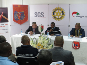 Cette année, le message clé du mois de la sécurité est « évaluer les risques, prenez le contrôle ». C’est dans ce cadre que le groupe Sgs Madagascar s’est associé dans une campagne avec la gendarmerie nationale et le rotary club Antananarvo Tsimbaroa pour une prévention routière responsable et citoyenne à travers la distribution de 15 000 brochures sur tout le territoire national. Une convention de partenariat dans ce sens a été signée hier entre la gendarmerie nationale, Sgs et le Rotary club Antananarivo pour marquer le lancement officiel de cette campagne nationale. « Le groupe Sgs respecte des principes dans la conduite des affaires dont l’intégrité, le respect, le développement durable, la santé et la sécurité. Le Sgs safety month entre dans le cadre de ce dernier volet. La sécurité routière est un thème qui nous est cher », a déclaré Cedric Catheline, directeur général du groupe Sgs Madagascar. « Des éléments de la gendarmerie vont distribuer ces brochures lors des contrôles des papiers sur la route », déclare le Général de brigade Manjakavelo. « Des sensibilisations et de distribution de brochures auront lieu aussi dans les écoles », explique le Général Lumpène Fidèle Rasolofo, président du Rotary Club Antananarivo Tsimbaroa.