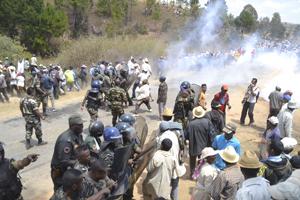 Lors de leur énième manifestation d’hier, les habitants de cette petite commune, en majorité des paysans, ont encore eu droit à des jets de lacrymogène qui ont cette fois eu comme résultats encore plus de blessés. Mais pas seulement car selon les informations recueillies auprès des villageois, les forces de l’ordre ont encore emmené deux personnes de plus parmi eux alors qu’ils réclamaient la libération de leurs leaders. Le Collectif pour la défense des terres malgaches (Tany) a également appelé à la libération de Robson Pierre et de Tsihoarana Andrianony mais aussi à l’arrêt de toute répression contre le mouvement populaire et à la satisfaction des revendications de la majorité de la population locale. De nombreux autres associations et mouvements ont interpellé les dirigeants concernant ce problème. Or, mis à part les deux leaders de l’association Vona, un autre, parmi la population de Soamahamanina en la personne d’Augustin Andriamananoro, est actuellement recherché pour « atteinte à la sûreté de l’Etat ». A cette liste déjà longue de trois personnes qui n’ont fait rien d’autre que réclamer le départ des exploitants chinois, s’ajoute donc deux autres simples villageois qui ne sont coupables que pour protéger leurs terres. Et qui ont, avec la majorité des habitants de cette commune pour ce même motif, été victimes de coups et blessures volontaires de la part des forces de l’ordre. Malgré l’absence de leaders, les habitants sont déterminés à mettre ces chinois hors de leur « tanindrazana « et hors d’état de nuire à leur patrimoine. Mais surtout à arrêter les travaux effectués par ces derniers. Ce n’était nullement le fait que des investisseurs exploitent la mine de Soamahamanina qui posait problème mais seulement que la population n’a pas été consultée alors qu’elle a été dépossédée de ses biens. Maintenant, cette affaire a pris une autre proportion car désormais, il s’agit d’un régime qui n’écoute pas son peuple mais qui en plus le brutalise.