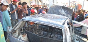 Hier, aux environs de 2 heures du matin, une Mercedes avait été réduite en cendres devant la banque BNI à Analamahitsy, dans le 5ème arrondissement. Le feu s’est déclaré pour une raison inconnue. Toutefois, aucune victime n’a été enregistrée. En effet, d’après les dires d’un agent de sécurité qui avait assisté à la scène, 3 personnes seraient sorties de la voiture, peu de temps avant l’apparition des flammes. Il s’agissait précisément de deux hommes et une femme transportant deux sacoches. Ces derniers n’étaient pas réapparus, cela même lorsque les flammes se sont violemment propagées ou lorsque les pompiers sont venus éteindre le feu. De ce fait, l’hypothèse de l’acte volontaire ainsi que du délit de fuite pèsent lourdement sur la balance. La raison de l’incendie n’a pas encore été élucidée jusqu’à présent. D’après les dires des témoins oculaires, le feu avait commencé sur une petite partie du moteur. Cependant aucune aide extérieure ne s’est manifestée ; les rares personnes présentes étant intriguées par la situation. Le réflexe de porter immédiatement secours avec de l’eau, du sable ou un extincteur avait donc été quelque peu oublié. D’ailleurs, les autres habitants du quartier étaient réticents à l’idée de sortir de leur maison, étant donné l’heure très matinale. Fort heureusement, quelques personnes de bonne foi avaient quand même pensé à prévenir les pompiers qui sont arrivés 15 ou 20 minutes après le déclenchement de l’incendie. Le feu s’est peu à peu éteint aussi soudainement qu’il est apparu.