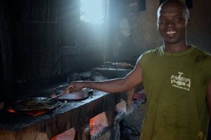 C’est dans les cuisines de la gargote « Couleur de la Lune » que nous avons sorti notre caméra pour suivre les préparations des recettes comme le fameux poisson au coco, le crabe en sauce et le poulpe grillé à l’ail! Nous vous recommandons cet endroit où l’on mange des produits frais, préparés à la perfection, et généreusement servis! Merci au propriétaire/cuistot, Judichael et à son épouse Liva qui nous ont gentiment accueillis dans leur cuisine!