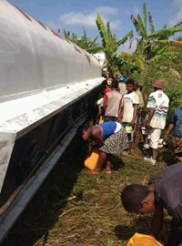 Accident d’un camion-citerne – Très rapide intervention des habitants