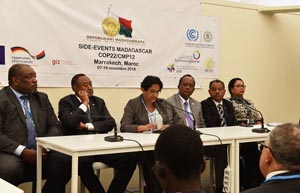 Le président Hery Rajaonariammpianina lors de son discours pendant la Cop 22 a soutenu que les impacts du changement climatique comptent parmi les premières causes de la pauvreté du pays. Il a énoncé que « Depuis près d’une décennie, cataclysmes naturels, inondation, cyclone de forte intensité et période de sécheresse menaçant la sécurité alimentaire s’y succèdent. Les femmes et les enfants en sont les grandes victimes. Presque toutes les régions du pays sont exposées alors que nos populations et leurs activités sont fortement dépendantes de la nature. » Face à une telle situation, le pays s’est engagé et s’engage encore de façon réaliste à réduire de 14 % ses émissions de gaz à effet de serre d’ici 2030 et à augmenter la capacité d’absorption de nos puits de carbone à 32% durant cette même période.