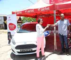 La remise du gros lot du jeu Fun quizz 22 a eu lieu hier au shop Airtel Ankorondrano. C’est la chanceuse Ratsimbanirina Nivomalala qui a gagné la prestigieuse Ford Fiesta à l’issue de cette 22ème phase du jeu. Maixent Bekangba, Directeur Général d’Airtel Madagascar, et Mohamadou Konkobo, Directeur Marketing d’Airtel Madagascar, ont honoré de leur présence ce moment de réjouissances, et ont remis solennellement les clés de la voiture à la gagnante.
