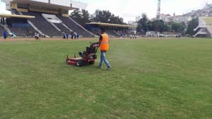 L’entretien de la pelouse du Stade de Mahamasina, premier site de la Coupe d’Afrique des Nations (Can) Total U17, va bon train.