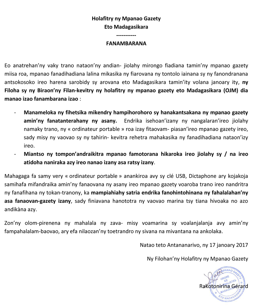 Anisan’ny fositra tsy mampandroso ny firenena ny fisian’ny sokajin’olona misalovana ny andraikitry ny hafa. Hita misongadina izany eo amin’ny sehatra rehetra. Ny fampahalalam-baovao no anisan’ny lasibatra voalohany amin’izany. Te ho