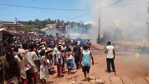 Pour essayer de disperser la foule qui s’était réunie sur l’avenue principale de la ville, les forces de l’ordre ont tiré des bombes lacrymogènes, mais cet acte a eu l’effet contraire. Cela n’a fait qu’attiser encore un peu plus leur colère, c’est alors qu’a commencé les jets de pierres. Plus les gendarmes répliquent, plus la réponse est violente. Certains ont alors commencé à incendier tous les cases, les maisons et les bâtiments qui se trouvaient à proximité du stationnement des taxi-brousse, ceux près du Bazary be et de la banque Boa. Un commerce appartenant à un sénateur Hvm était parmi ceux brûlés par la foule en colère. Des groupes d’individus ont également incendié plusieurs bâtiments administratifs, ainsi qu’une station-service. Les gendarmes ont tenté de maitriser ce débordement en procédant à l’arrestation des meneurs du mouvement mais la population a très clairement fait savoir que quiconque oserait capturer ou tirer sur l’un d’entre eux, sera … lynché. En sous-effectif, les forces de l’ordre ont préféré se regrouper autour du bâtiment de la gendarmerie. La situation n’est pas prête de s’améliorer, et jusqu’à présent, aucun représentant du gouvernement central n’est descendu sur place pour essayer d’arranger les choses et trouver un terrain d’entente. Les dernières informations qui nous sommes parvenus, font référence à la mise en place d’un couvre feu. Toute circulation est interdite dans la ville entre 18h et 6h jusqu’à nouvel ordre.