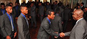 Les deux équipes malgaches en lice aux compétitions africaines, Ligue des Champions et Coupe de la Confédération africaine de football (Caf), Cnaps Sport et Elgeco Plus ont quitté le pays hier. Avant leur départ, la délégation malgache a effectué une visite de courtoisie auprès du Premier ministre chef du gouvernement, à son bureau à Mahazoarivo. Durant cette occasion, les équipes malgaches ont reçu le traditionnel « Tso-drano du Ray aman-dreny », afin qu’elles rapportent de bons résultats à leur retour. En ce qui concerne Elgeco Plus, « les conditions sont réunies pour le qualifier d’une grande équipe. Le problème d’argent reste un blocage dans le football à Madagascar. Appartenant à une grande entreprise, la formation Elgeco a tous les atouts par rapport aux autres », lance le Premier ministre. Rappelons qu’Elgeco Plus ralliera Johannesburg pour disputer le match retour du préliminaire de la Coupe de la Caf contre le SuperSport United Fc, le dimanche 19 février à 18h30 (heures locales). Les deux équipes se sont quittées sur un match nul (0-0) à Antananarivo. Quant à la Cnaps Sport, les caissiers affronteront les Township Rollers de Botswana au Gaborone National Stadium le 18 février prochain pour la manche retour après leur victoire (2-1) à domicile, samedi 11 février.