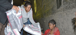 Le circuit de distribution a débuté à Andravoahangy, au tunnel Behoririka, à Antanimena en passant par Analakely et le tunnel d’Ambohidahy pour finir à Anosibe et Ambohijatovo. Une remise qui s’est faite tard dans la soirée car à partir de 21h30, les bordures de route, les tunnels et autres recoins font office d’abris de fortune. Et des couvertures qui tombent à point nommé pour ces « laissés-pour-compte » puisqu’elles remplacent désormais les sacs en plastique et les cartons pour se protéger du froid.