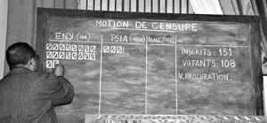 Le vote de la motion de censure à l’encontre du général de brigade aérienne Jean Ravelonarivo et de son gouvernement a enfin pu avoir lieu hier, très tard dans la nuit. Le dépouillement s’est déroulé aux alentours de 23 heures et sous la bienveillance de certains ministres dont celui de l’Intérieur, de la Fonction publique, de l’Education nationale, de l’Industrie, du Commerce et de l’Energie qui n’avaient pas l’air d’être du tout inquiet.
