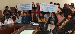 Le ministère d’Etat Rivo Rakotovao, après avoir menacé de suspendre le salaire des grévistes, a procédé au recrutement de 20 employés à contrat déterminé pour reprendre les activités dudit service. Une fois de plus, le ministre a fait comprendre que toute décision lui revient et comme il a, à maintes reprises, averti et menacé les employés, il a fini par opter pour une mesure drastique intégralement contestée par les employés. La semaine dernière, il a souligné que les activités ne peuvent attendre ceux qui ne veulent pas travailler. En effet, le ministre d’Etat a jugé perspicace le fait de recruter des ECD. « Non seulement les 20 nouveaux employés sont incompétents mais ils ne répondent en aucun cas à la qualification requise » explique le syndicat. Ce dernier de crier au scandale du ministère et d’interpeller l’opinion publique. « Ces personnes sont déjà présents sur les lieux du travail depuis lundi et vont reprendre notre travail à partir de ce jour. Il s’agit de faire entrer dans le service des domaines des gens qui ne maîtrisent même pas le métier. Nous contestons l’embauche de ces personnes » a annoncé un président des 3 syndicats du service des domaines. Rado Rabarilala, porte-parole du syndicat des employés de la compagnie Air Madagascar ainsi que quelques membres de l’Alliance des fédérations et des organisations syndicales (AFOS) sont venus soutenir les employés du service des domaines.